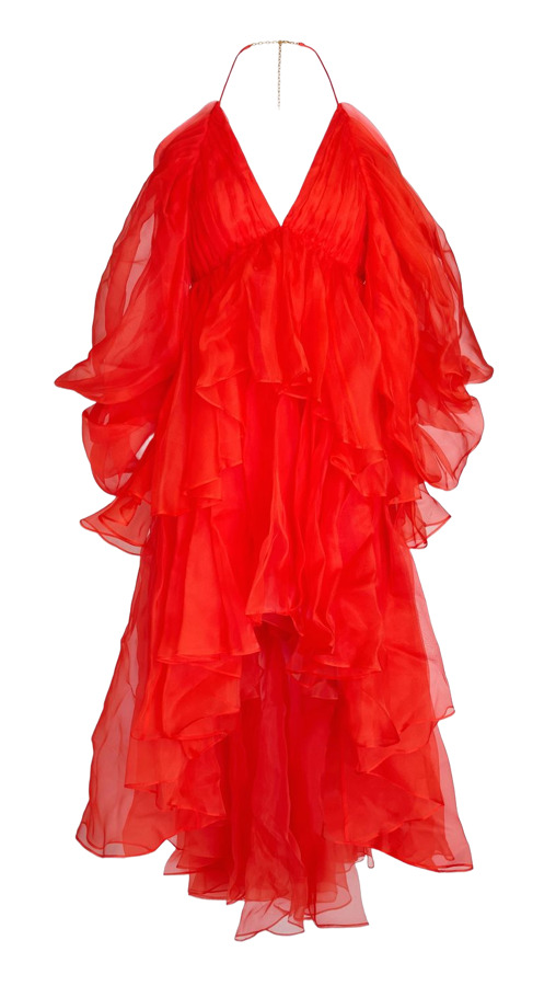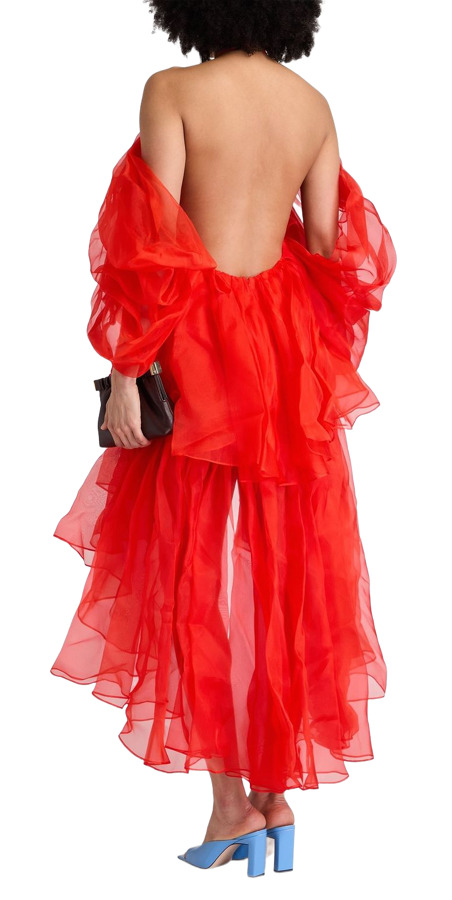 Get ready to turn heads in the Zimmermann Floaty Dress! This gorgeous cold-shoulder piece is crafted from delicate silk-organza, featuring whimsical ruffles and a stunning open back that will leave everyone in awe. Perfect for making an impression in every photo, this dress is best paired with minimal accessories for maximum impact.