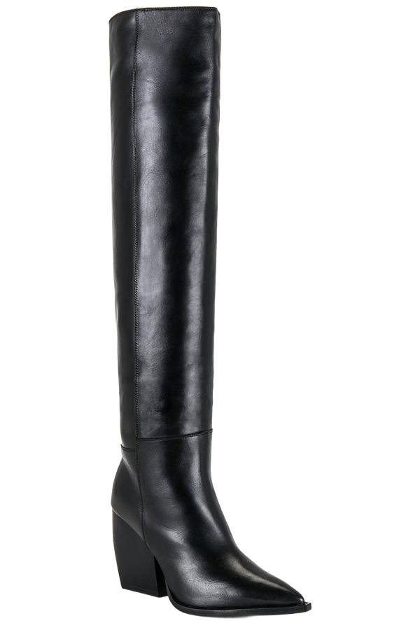 The Reina Boot by ALLSAINTS features a luxurious leather upper and sole, crafted in Spain. With a stylish split detail at the back, these boots effortlessly combine contemporary design with premium quality, making them a chic addition to any wardrobe.
