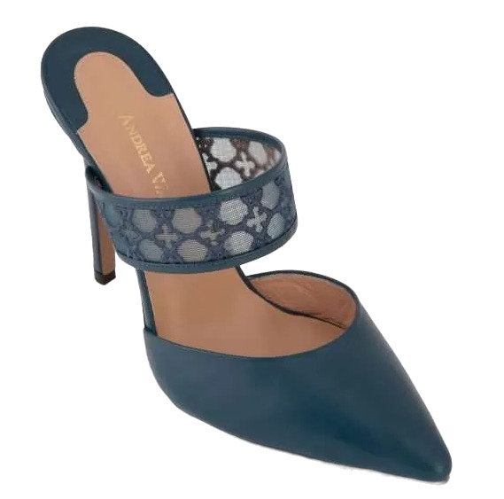 The Andrea Wazen Petrol Blue Mika heels combine luxurious nappa leather with intricate embroidery on mesh for a striking look. These elegant heels feature a sophisticated silhouette, perfect for elevating any outfit. The unique design and rich color make them a standout choice for both special occasions and stylish everyday wear.