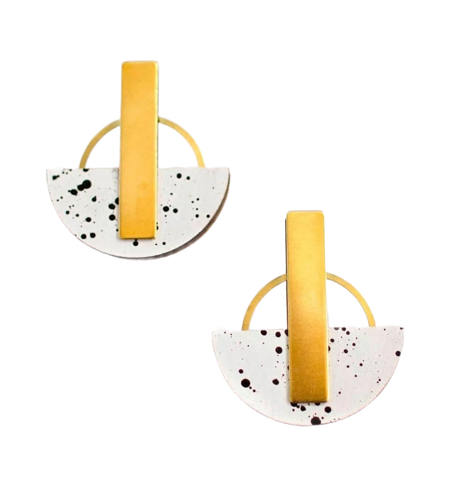 Add a touch of modern sophistication with L?thar earrings. Geometric and timeless, these handmade pieces from the south of Spain are crafted from nickel-free brass, featuring a secure wooden backing for durability. A unique and stylish addition to any outfit.
