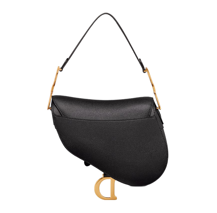 Maria Grazia Chiuri updates the iconic Saddle bag in black grained calfskin. It features a Saddle flap with a D stirrup strap, magnetic pull, and antique gold-finish CD signatures. The bag includes a thin, adjustable, and removable strap for versatile wear, along with an interior pocket and a back pocket, lined in luxurious goatskin and calfskin.