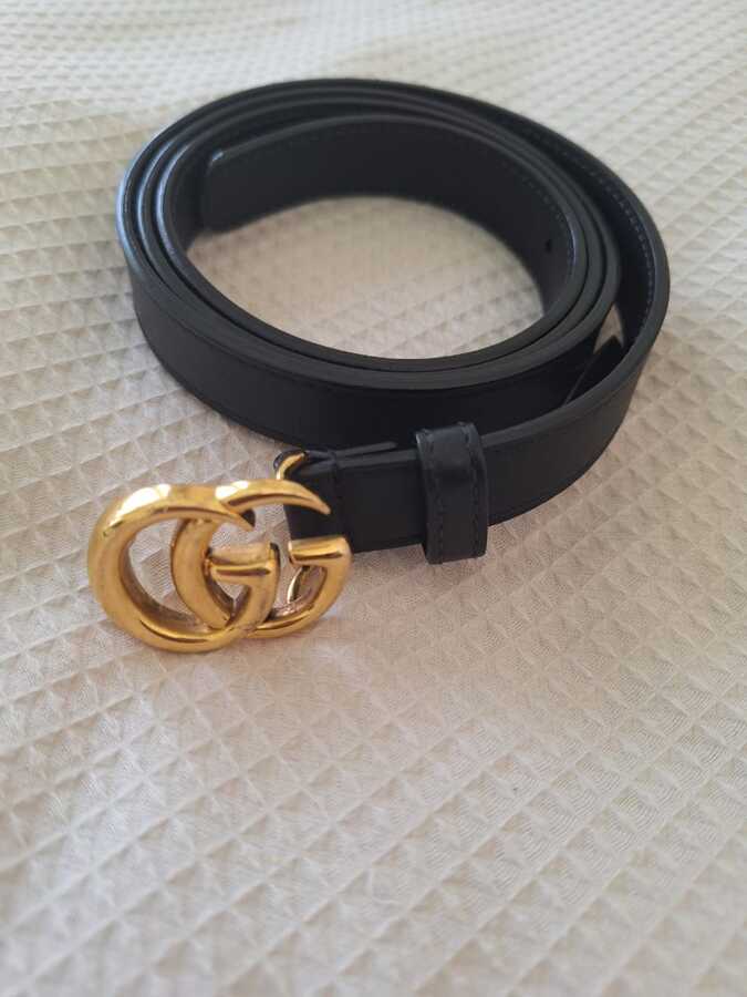 Elevate your style with Gucci's GG Marmont belt, crafted from smooth black leather with an adjustable length. Accented by the iconic Double G buckle in an antique gold-tone finish, this pre-owned piece adds a sustainable touch to your wardrobe while enhancing any outfit. Featuring a leather lining and a buckle fastening, it’s a timeless addition made in Italy that combines luxury and eco-consciousness.