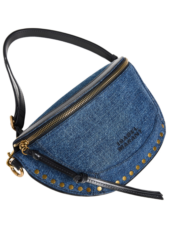The Skano Belt Bag by Isabel Marant features a stylish denim design complemented by antiqued hardware and leather trim. Its structured silhouette includes a convenient zip closure, as well as patch pockets on both the interior and exterior for added functionality. With an adjustable strap, this bag is perfect for any occasion, combining practicality with chic flair. The textile lining adds a touch of luxury to this versatile accessory.