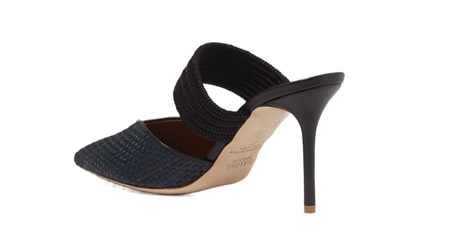 The Maisie 85 mules from Malone Souliers offer an elegant finishing touch to day and evening ensembles. Handcrafted in Italy, this captivating design features a braided cord strap that securely anchors the foot, while the pointed toe is woven from raffia, creating a subtle textural contrast.