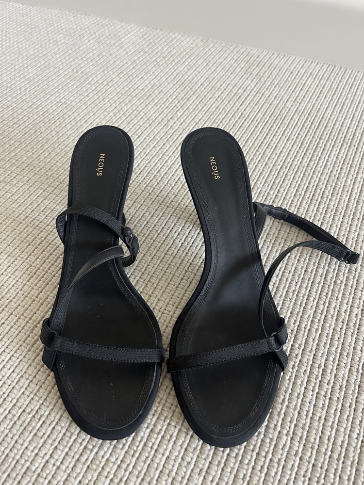 Calling all IT girls. These sophisticated sandals from NEOUS feature a sleek black bra strap design. The open-toe silhouette is complemented by an elasticated slingback strap, providing both style and comfort. Finished with a branded insole and leather sole, the 80mm high heel elevates the look with a touch of glamour.