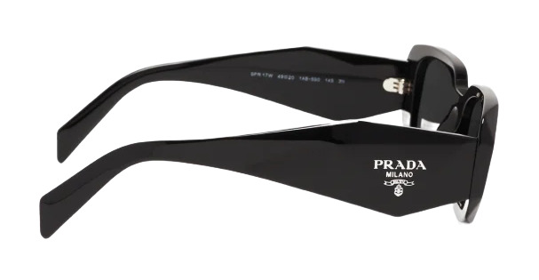 These acetate sunglasses feature an oversized, geometric design with a bold frame that boasts an avant-garde silhouette, highlighted by sharply angled outer corners. The three-dimensional temples are adorned with an iconographic interpretation of the classic Prada triangle logo, adding a touch of sophistication to this striking accessory. Perfect for making a fashion statement, these sunglasses blend modern artistry with timeless elegance.
