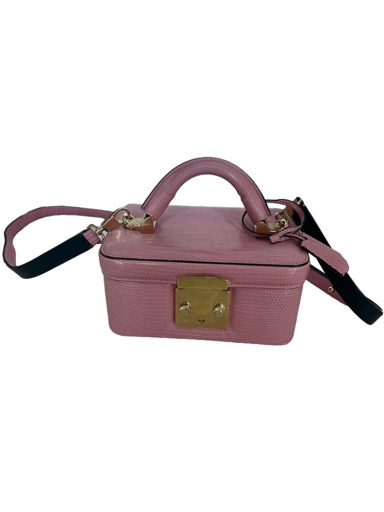 Inspired by vintage beauty cases, this version is crafted from finely textured lizard skin with palladium-plated metal hardware. Carry it crossbody by unfurling the removable shoulder strap for a chic, retro-inspired look.