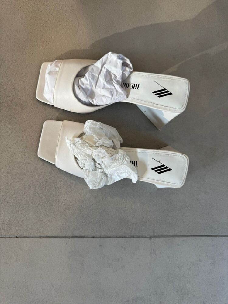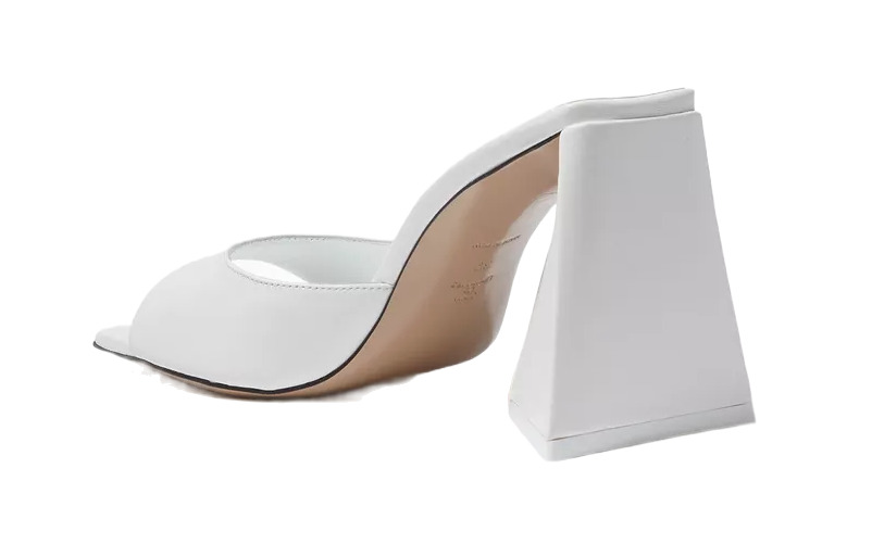 Attico's Devon mules embody a sophisticated contemporary aesthetic. Crafted from smooth Nappa leather, these minimalist slip-on sandals feature a square open toe and a pyramid-shaped heel, adding a sculptural touch to their design. Perfect for elevating any outfit with effortless style.