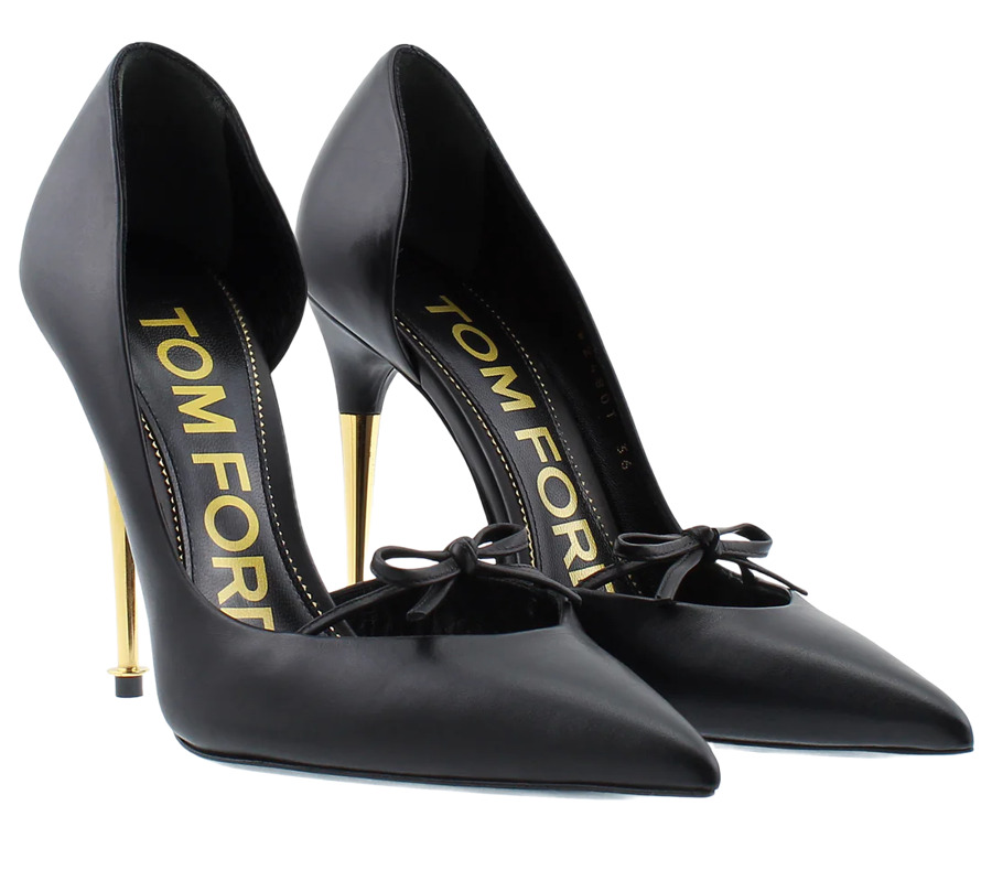 Elevate your style with these exquisite Tom Ford pumps. Crafted in Italy from luxurious leather and elastic, they feature a sleek pointed toe and elegant 12 cm heels. Finished with plush leather insoles and durable soles, these classic black pumps are the perfect statement piece for any sophisticated occasion.