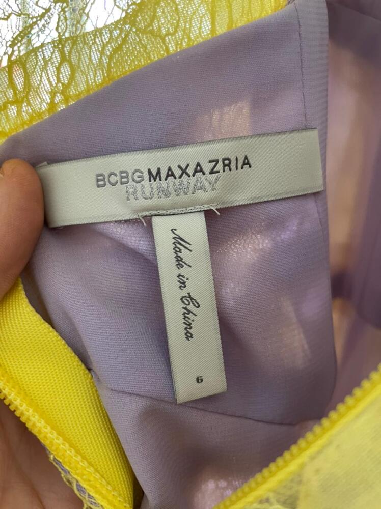 Has this BCBG Maxazria Runway number caught your eye? Us too. This yellow lace with purple underlay maxi dress is the perfect wedding guest outfit. Match the purple undertone with your accessories.
