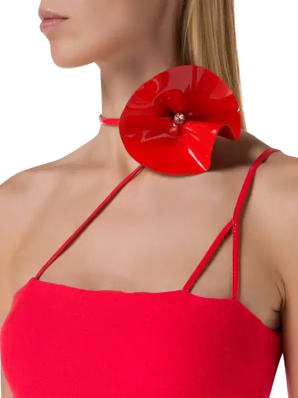 David Koma's Flower Embellished Side Slit Mini Dress is your ticket to effortless style. Crafted in the UK, this dress showcases your inner fashionista with a daring open leg and playful ties at the thigh, making you feel like a star. The delicate spaghetti straps and halter neckline add a touch of allure, while the glossy red flower at the neck exudes sophistication. Make a statement and flaunt your flair wherever you go!