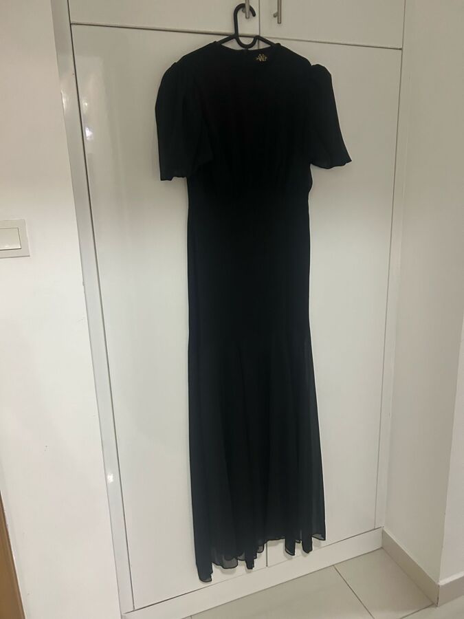 Make waves in the Agua chiffon maxi dress by DE LA VALI. Crafted from recycled polyester, this ethereal piece exudes elegance with its crinkled finish and semi-sheer panels. Short puff sleeves and a round neck add a touch of whimsy, while the flared skirt flows gracefully to the floor. Complete with a concealed rear zip fastening, it's the epitome of effortless allure.
