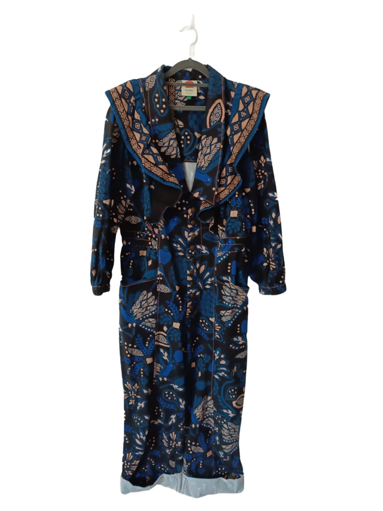 FARM Rio's statement jumpsuit in 100% printed cotton offers a vibrant allure. With long sleeves, a flattering V-neck, and a front button closure, this bold piece is your go-to one-and-done outfit, ensuring you always feel amazing for any occasion.