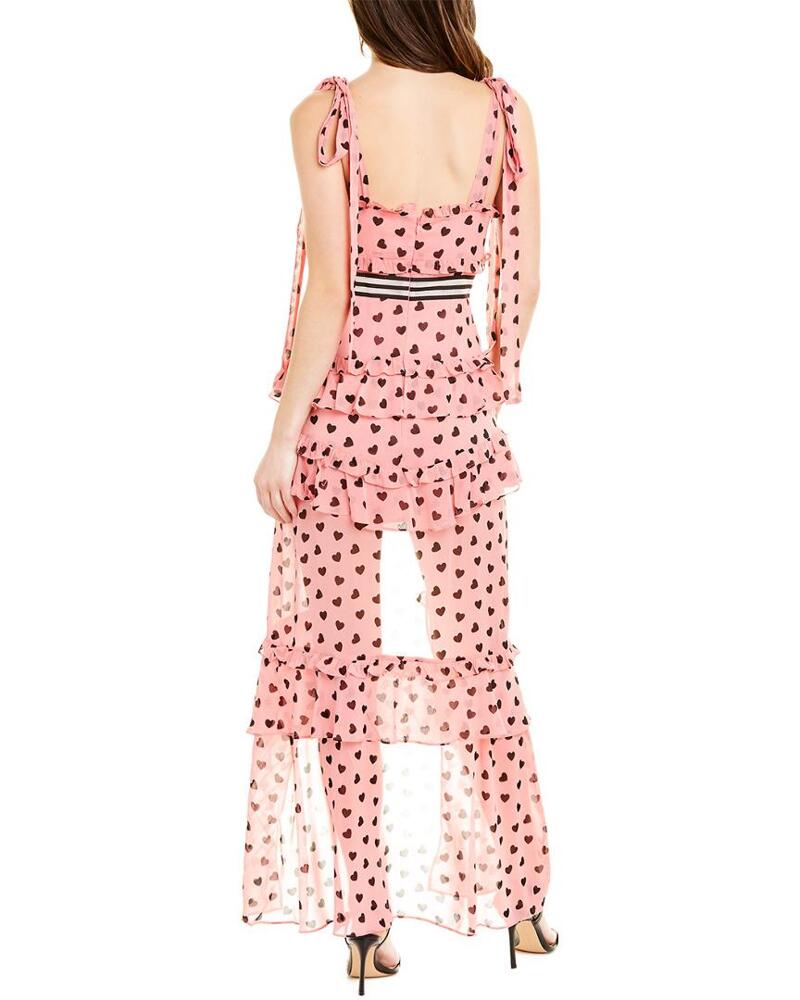 Love is in the air. The Maison Maxi Dress is a flirty-feminine heart print maxi that features romantic tiered ruffles, a high front slit and contrasting sporty elastic waistband. Do you dare to style her with sport socks and heels?