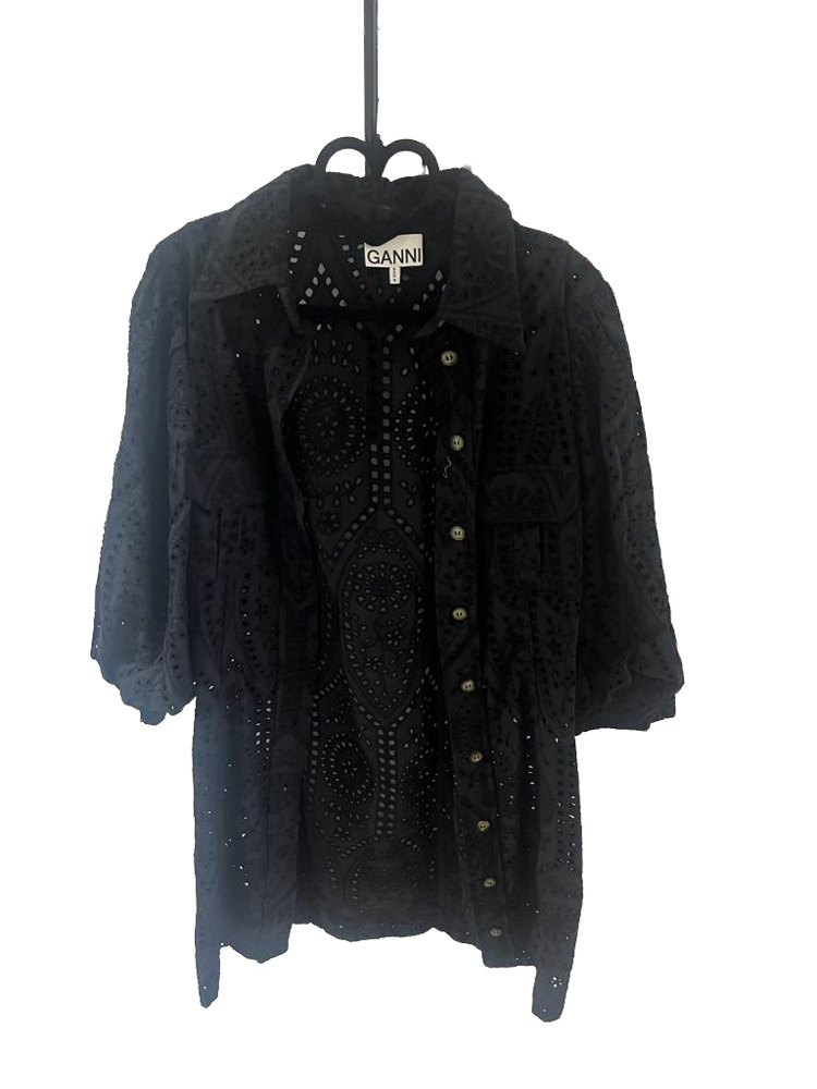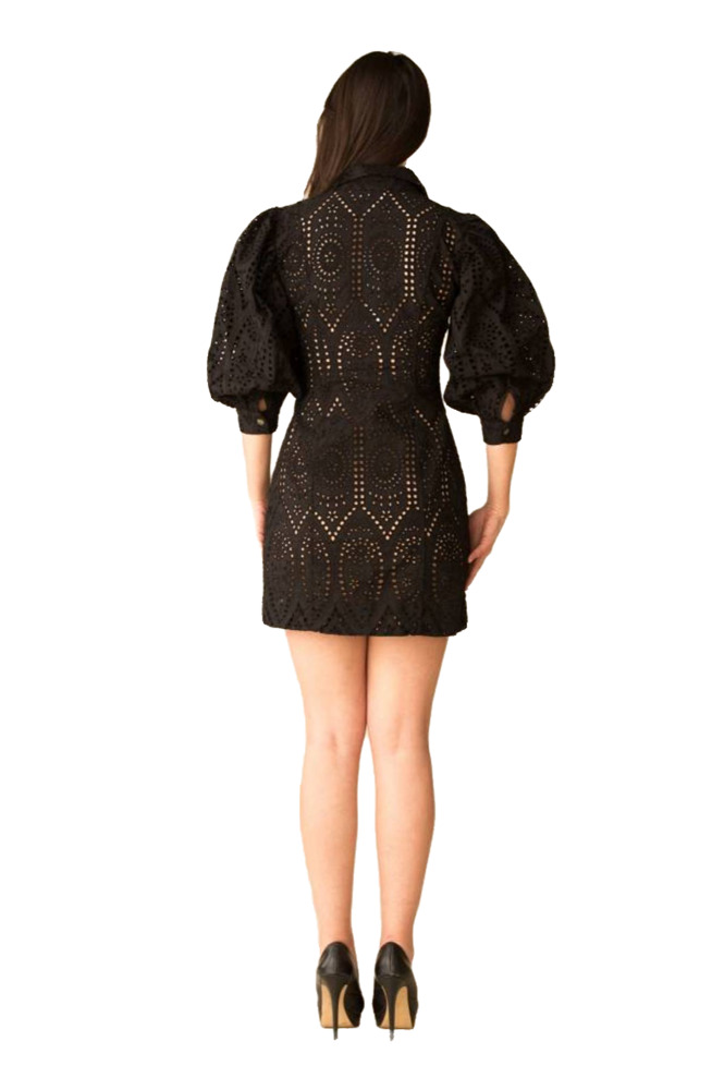 Indulge in youthful charm with the Broderie Anglaise Cotton Mini Dress. Adorned with floral eyelets, a point collar, three-quarter balloon sleeves with buttoned cuffs, and front patch chest pockets, this dress exudes a fresh, lively spirit. Its mini-length hem brings a touch of playfulness, making it an ideal choice for various occasions. This dress works like Benjamin Button's magic, rejuvenating your appearance instantly. Make a splash with statement earrings and ankle boots.