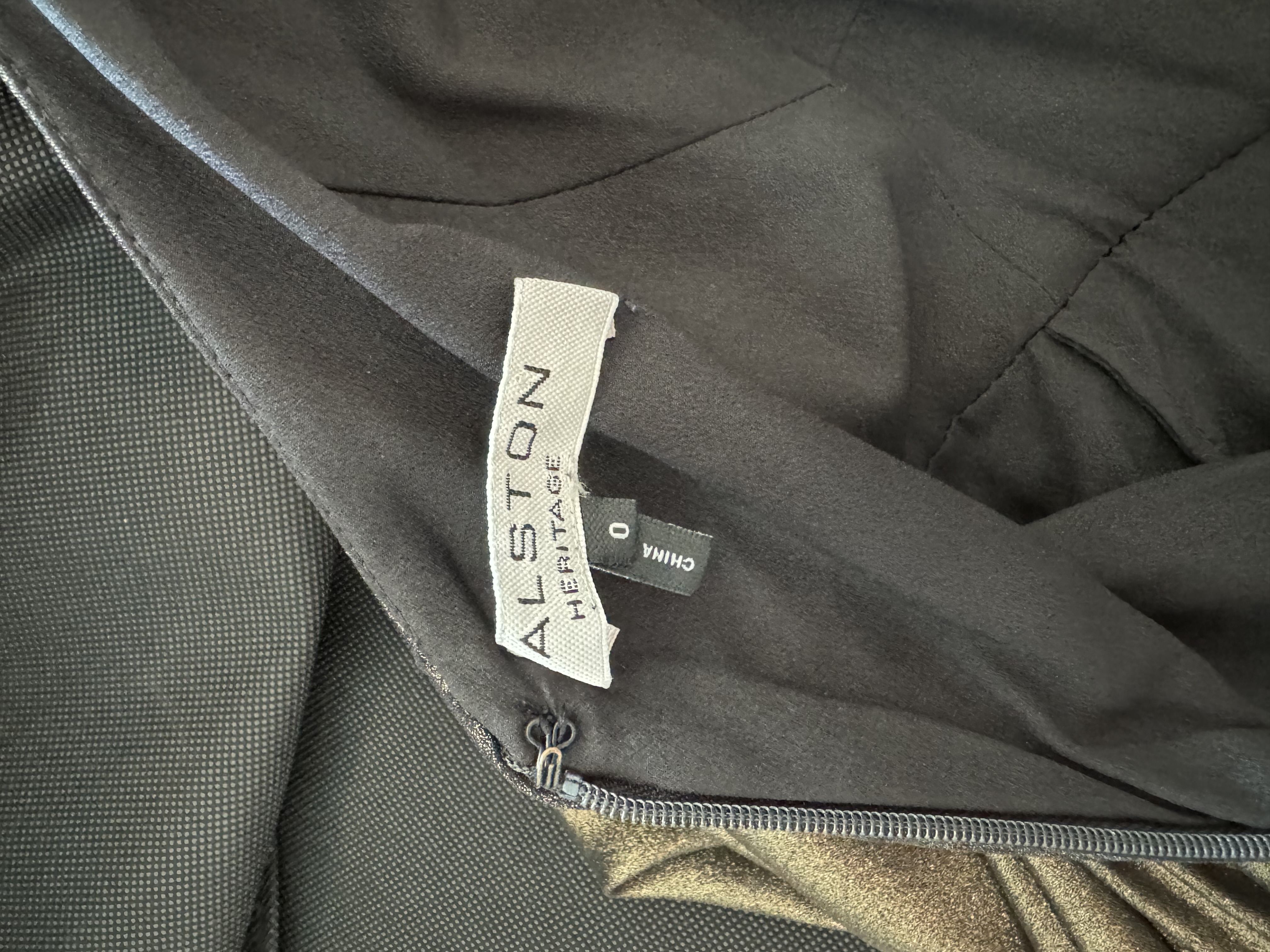 This stunning Halston Heritage ballgown in gold lamé features a keyhole detail at the neckline and a nipped-in waist for a flattering silhouette. Double-lined for added elegance, it drapes beautifully with a slightly flowing hem. This dress is a true showstopper, perfect for making a memorable entrance at any event.
