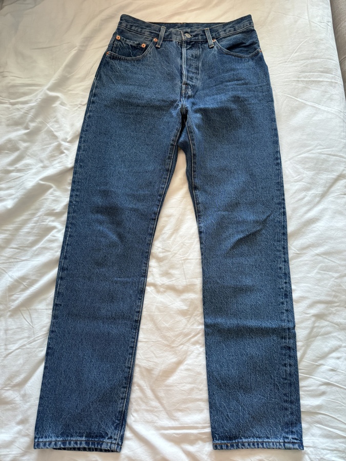 The 501 Straight Leg Jeans feature a classic straight-leg design that hits at the ankle. With a length of 30 inches, these jeans offer a timeless silhouette, perfect for versatile styling. Crafted for comfort and durability, they are an essential addition to any wardrobe.