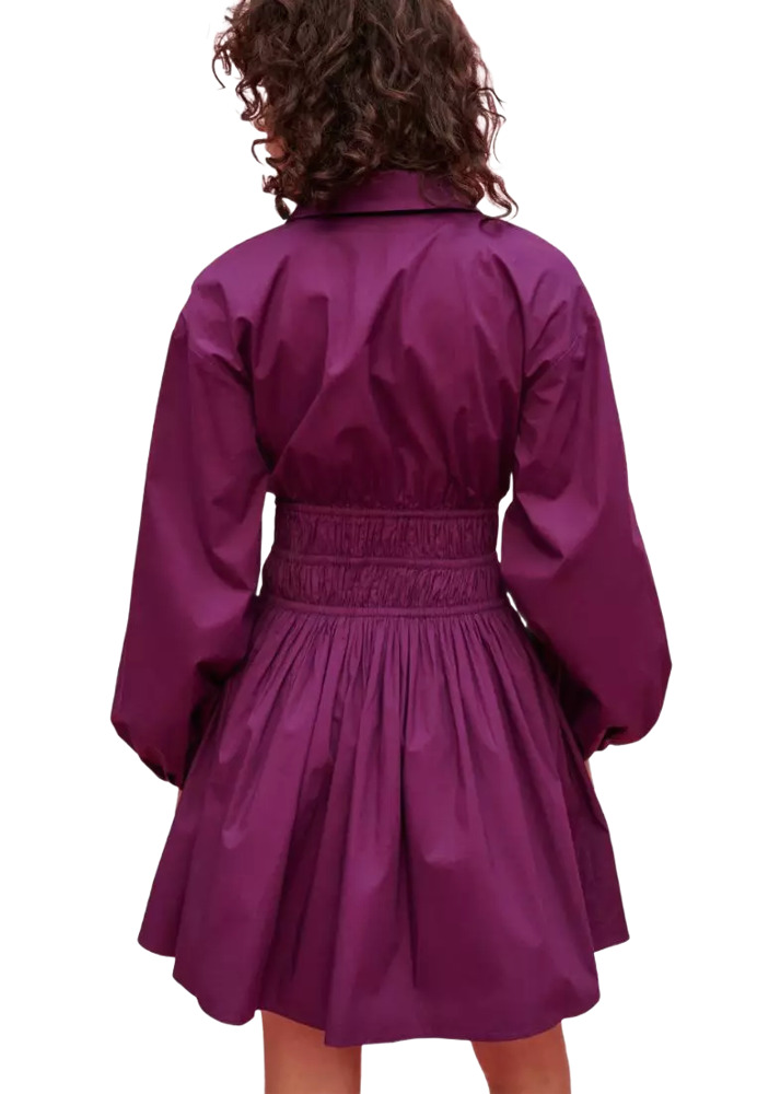 Meet the Rianor Smocked Waist Dress by Maje: a short stretch cotton dress that's as versatile as it is stylish. With a flattering flared bottom and long, loose sleeves featuring elasticated cuffs, it strikes the perfect balance between comfort and sophistication. The shirt collar and front buttons add a touch of classic charm, while the elasticated waist ensures a flattering fit for all body types.