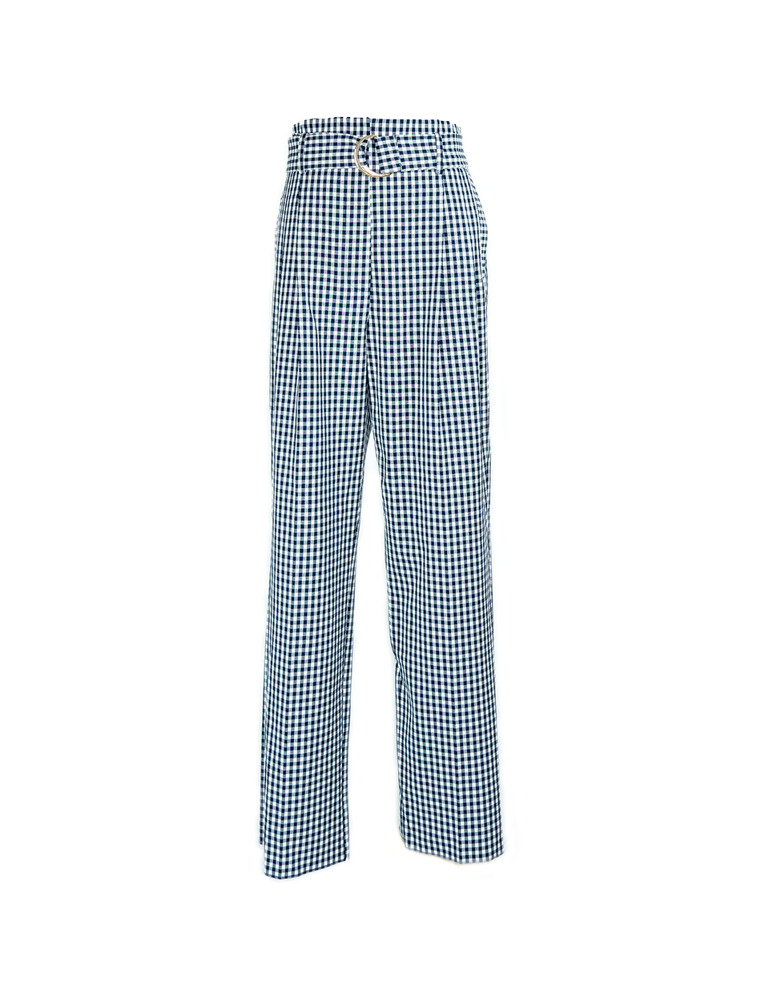Navy Blue and White Gingham Pants with Belt