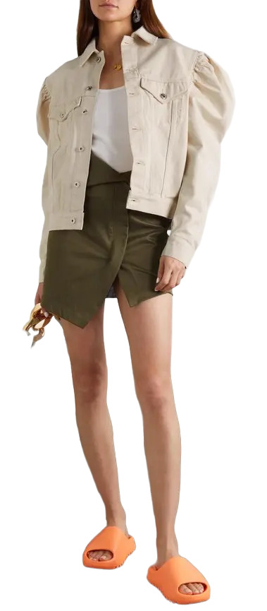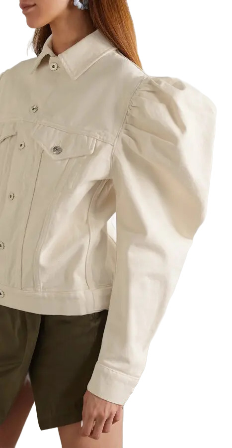 Marques' Almeida's denim jacket is elevated by romantic puffed sleeves, mindfully crafted from GOTS-certified organic cotton and treated with vegetable-waste dye, offering a sustainable and stylish take on the classic denim jacket.
