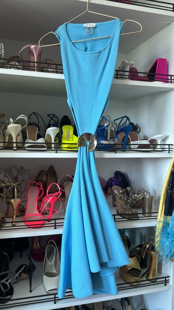Nail summer style with classic cuts and bold accessories. The Lanao Blue Cut-Out Knitted Dress, paired with a gold accessory, is simplicity meets extravagance. It's the ultimate statement piece for the poised and elegant lady looking to turn heads effortlessly.