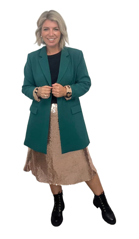 This practical yet stylish green suit for the bold and confident woman who wants to make a statement. Embrace the power of green and exude confidence in every step!
