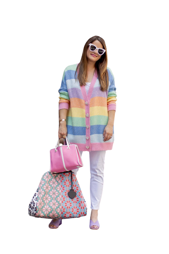 Introducing the Mika cardigan by Olivia Rubin - a delightful blend of timeless charm and playful eccentricity! This knitted beauty showcases the brand's iconic stripe pattern, embellished with shimmering sequins and darling pink ribbed trims. But the true stars of the show? The dazzling diamante buttons that steal hearts! This cardigan wraps you up snug while ensuring you radiate absolute fabulousness.