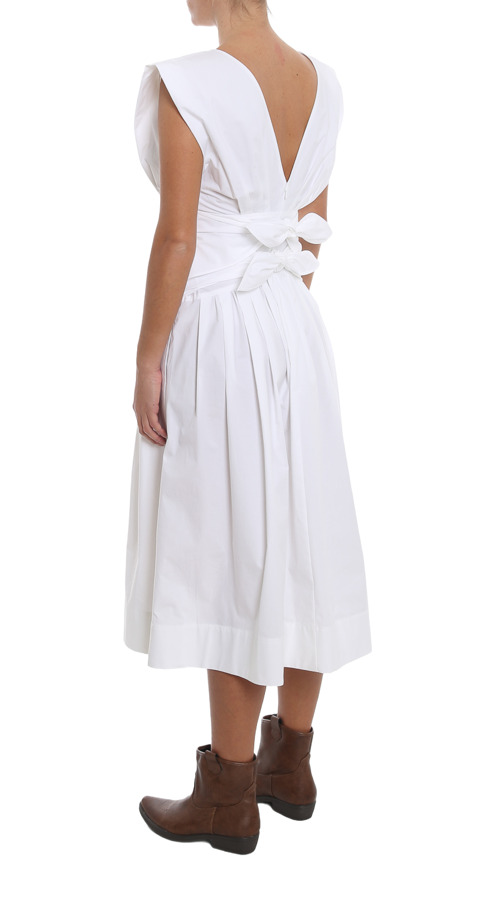 This white cotton shirt dress features a fitted midi length and a deep neckline, combining classic style with a modern twist. Its clean lines and breathable fabric make it a versatile choice for various occasions, ensuring you look effortlessly chic and comfortable.