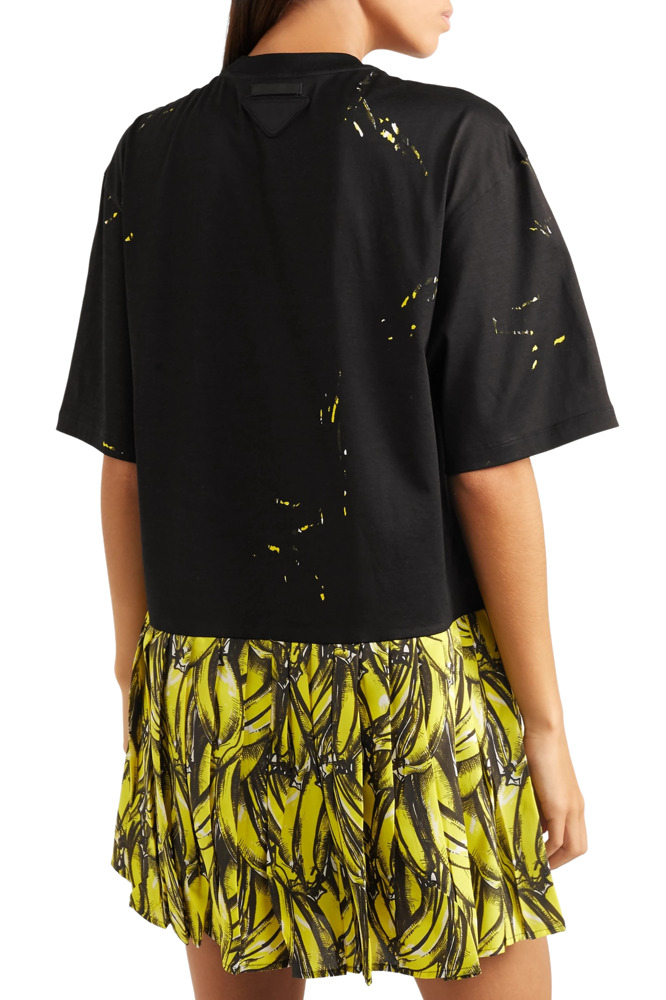 The world went mad for Prada's OG banana print in the Spring '11 and it was published on no less than 48 international fashion magazine covers! Prada revived cartoonish pattern for a second serving in the Pre-Fall '18 show as seen on this pleated mini dress. We love the boxy shape that works best with sneakers, biker boots or a chunky loafer.