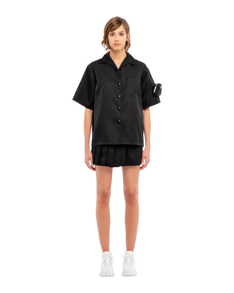 For the full Prada Princess look pair this bowling shirt with the Nylon A-line Skirt, Diamante Scrunchie and beaded Prada clutch all from Sirines closet.