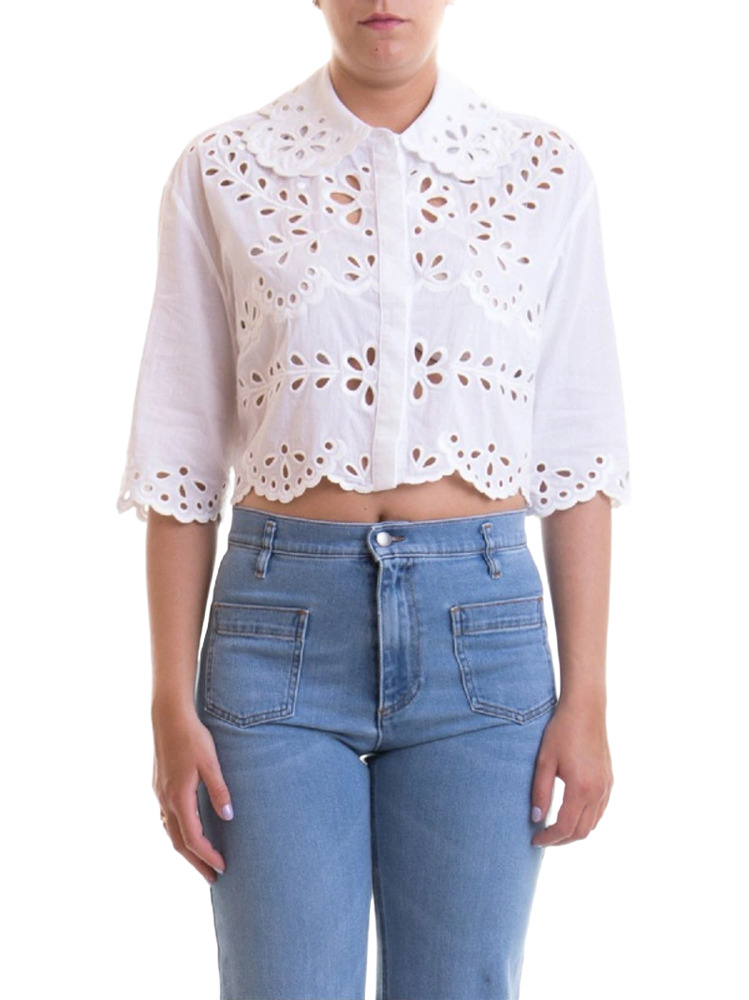 Broderie Anglaise Cotton-Poplin Mini Skirt and Blouse