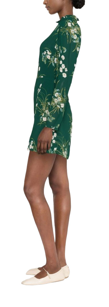 The Lewis Long-Sleeve Dress in forest green features a charming floral print that adds a touch of elegance. With a high neck and gathered detailing, it offers a flattering silhouette complemented by subtle puff sleeves. The concealed rear zip fastening ensures a seamless look, while the straight hem completes this sophisticated piece, perfect for any occasion.