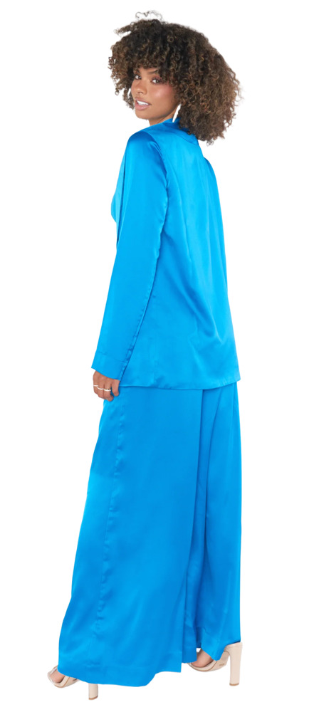 Channel your inner cool boss babe in this vivid Felix blue blazer. Satin fabric and chic buttons elevate the blousy fit. Pair it with our easy breezy chic Irwin pants, featuring an elastic waist and luxurious satin fabric for a look that's anything but basic.