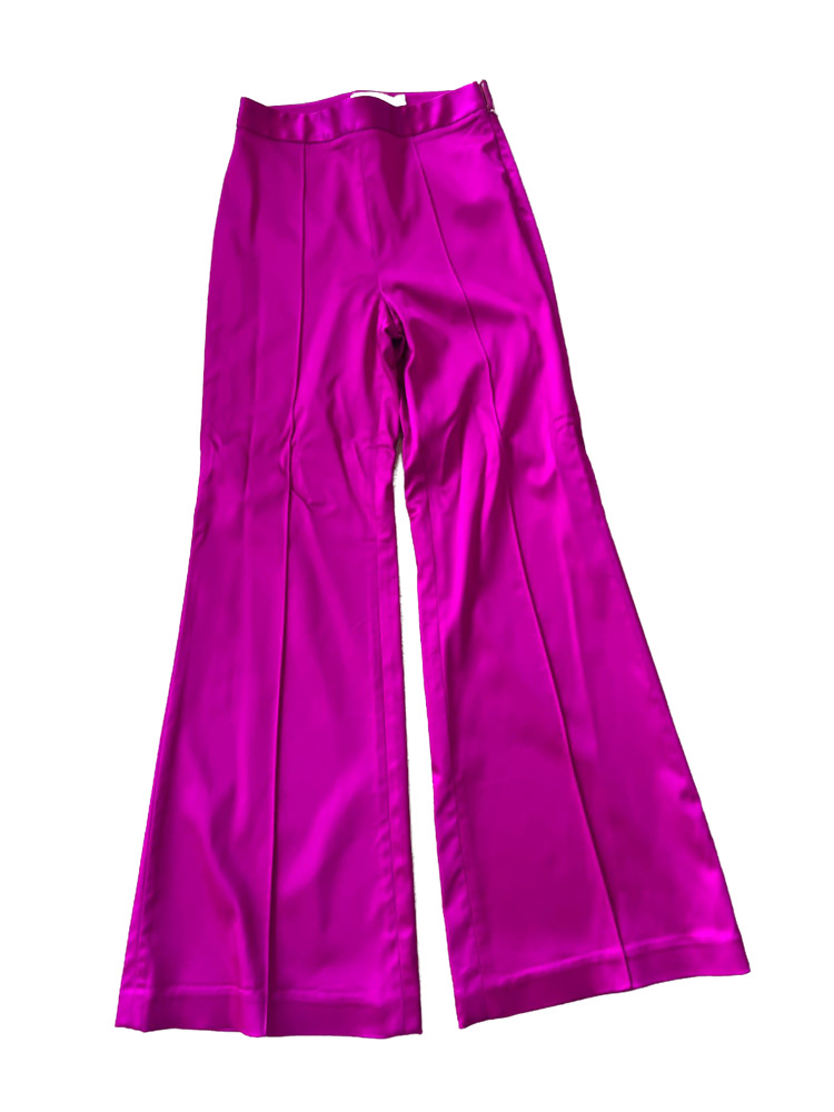 Inject boldness into your look with these standout pants from Simkhai. Crafted in lustrous satin, the high-rise silhouette boasts elegant press pleats along the legs, concluding in a chic bootcut flare. Pair with coordinating pink details for a striking, all-out statement look.