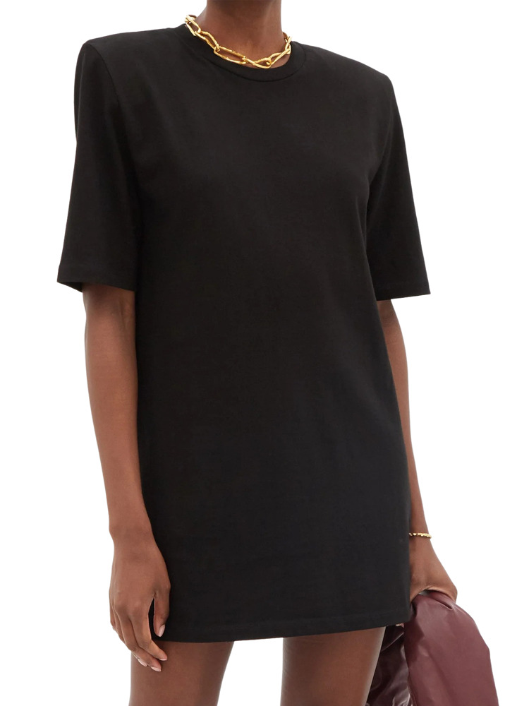 The Frankie Shop stopped the fashionsphere with the release of their Eva padded T-shirt dress. It's the wear-her-anywhere-dress of the decade, chuck on some chunky boots or swap for sassy stilettos. This one has been made even more versatile with the addition of a removable father trim that's guaranteed to take you from casual to ultra glam with the snap of a few poppers.
