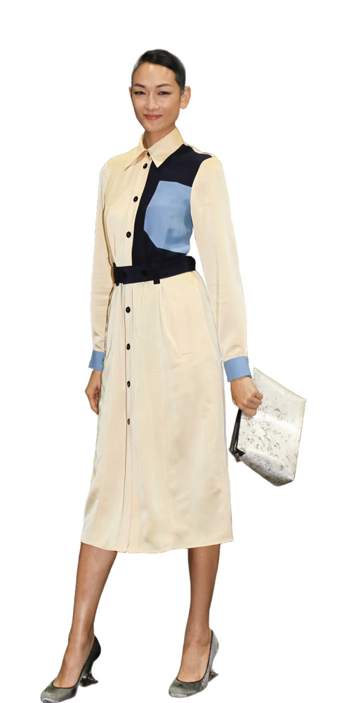 A playful palette mashup with contrast navy and cornflower blue panels. Complete with a pointed collar, a detachable button-fastening waist belt, and front slit pockets for hiding secrets.