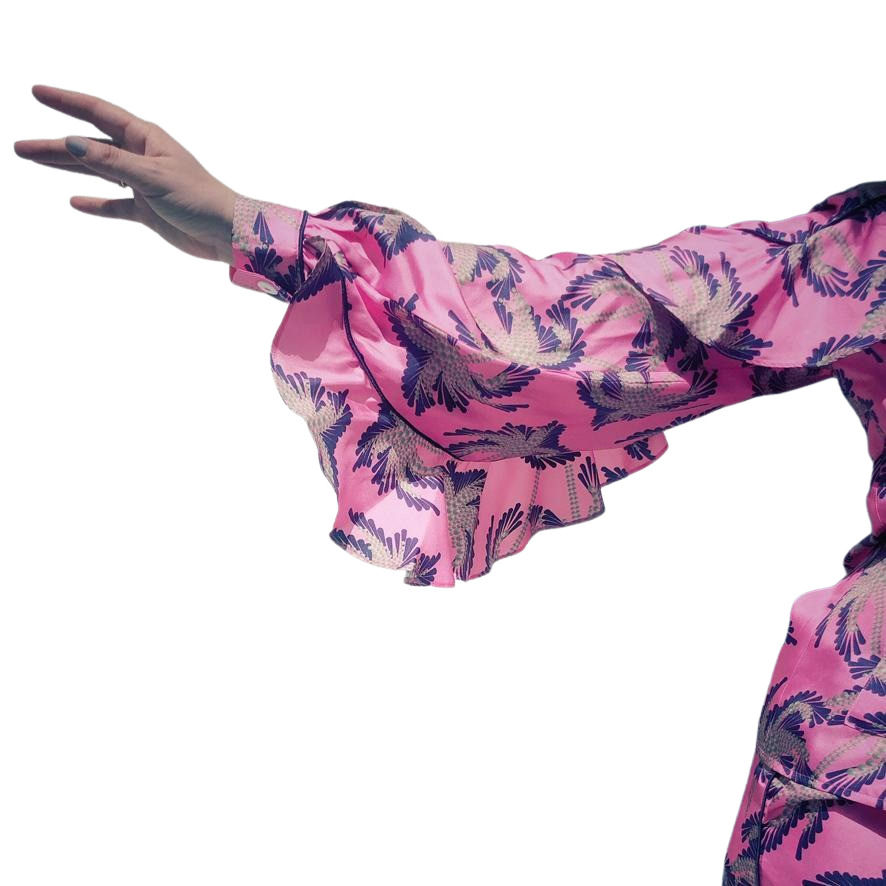 Our favorite PJ brand delivers powerful prints on lucious silk yet again, this time in the form of vintage miami style palms. Match this short set with a killer heel to rock your girls night out.